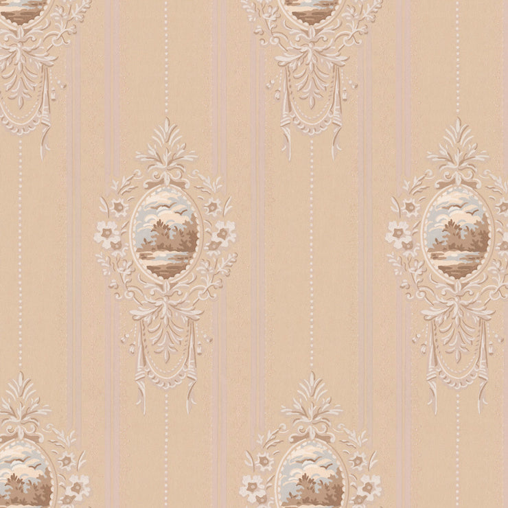 Girlish without being too saccharine, Demoiselle features classic cameos in beige and pink with a hand-painted look.