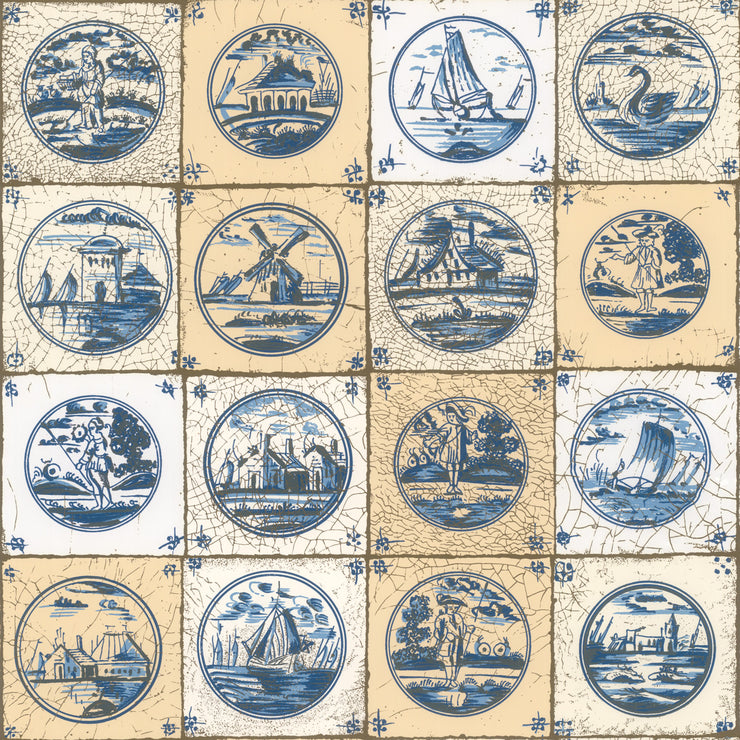 This charming vintage pattern features vignettes of Dutch life, including windmills, swans, and country homes.