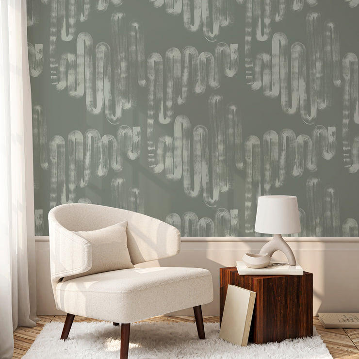 Simultaneously energetic and peaceful, our Gesture 6 wallcovering rises to new heights. Get lost in the repeating curves, set off by two-tone, pared-back colorways.