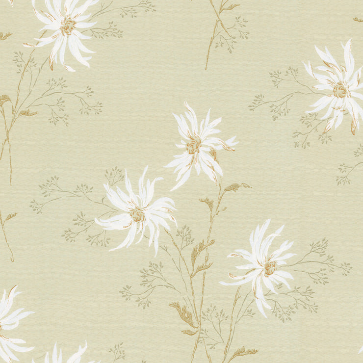 Marguerite is a soft and delicate design with white daisies in bloom. The muted yellow background makes it seem innocent and inviting, reflecting this on any space where it's placed. Part of our 1940s-1950s wallcovering collection, Marguerite is digitally printed to order and can be customized in scale, color, and material.