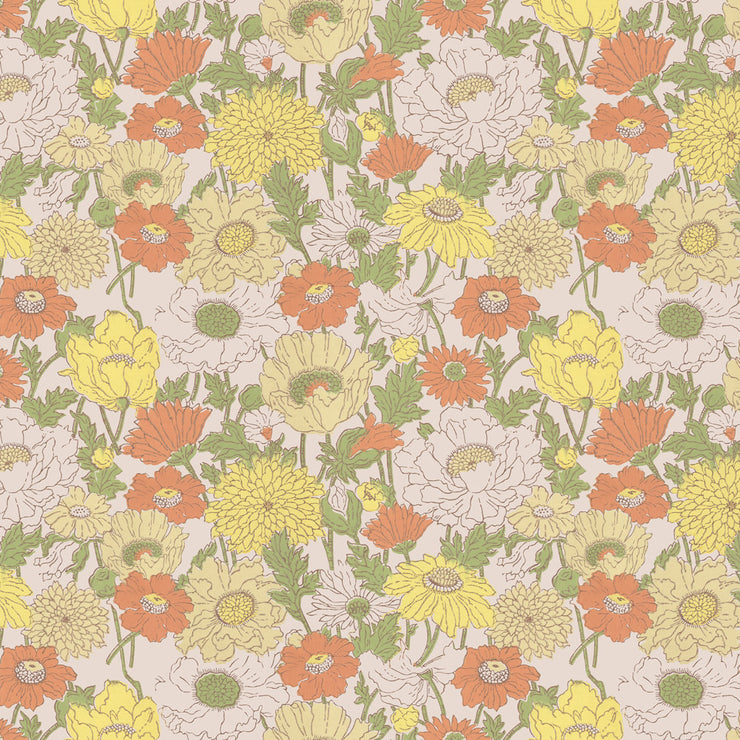 Petula features many detailed flowers that appear as if they are drawn. The intricacies of this wallcovering make it ideal to add a pop of color in any space. Part of our 1940s-1950s wallcovering collection, Petula is digitally printed to order and can be customized in scale, color, and material.