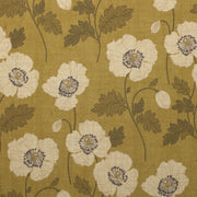 Cream colored poppies are printed on a burlap ground. Hand-woven from plant fibers, this natural material adds a subtle organic texture to designs and patterns.