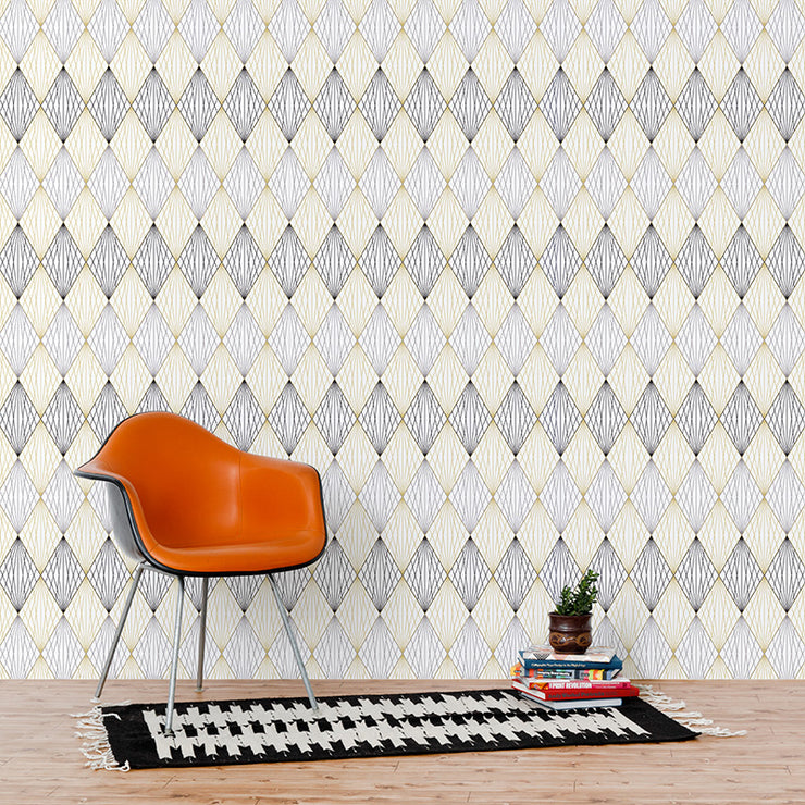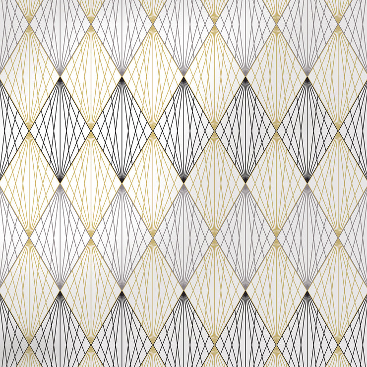 Inspired by the glamorous roaring twenties, our Moderna collection boasts luxurious Art Deco designs in a contemporary style. Vitrolite features an argyle-like pattern with a metallic finish and intricate details. It is found in three colorways: Apollo, Beryl, and Porcelain. This design is available on a wide range of materials, sized and digitally printed to order, and available for color and/or scale customization.